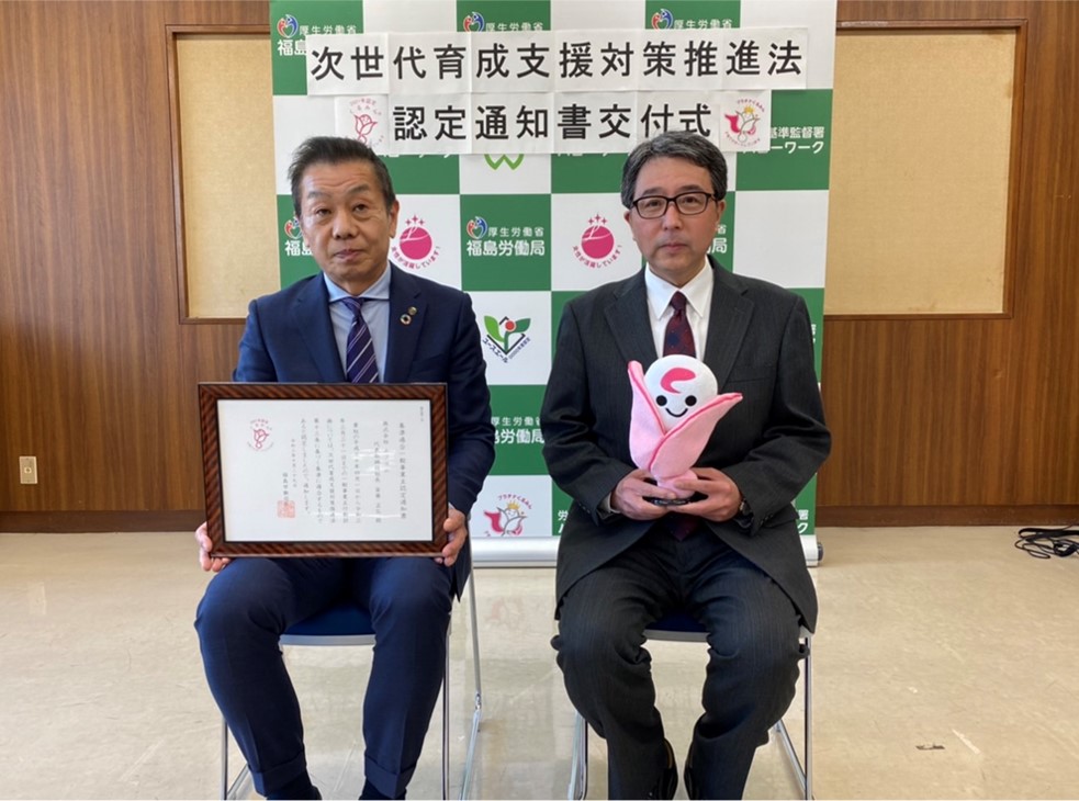 次世代育成支援対策推進法に基づき、従業員の「子育てサポート企業」として、